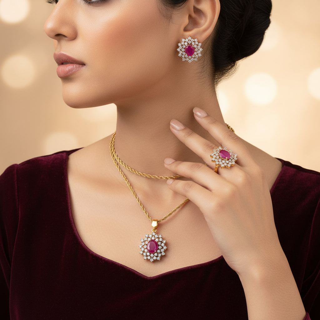 Ruby Rolyale Locket Set | 24k Gold Plated, Real American Zircons