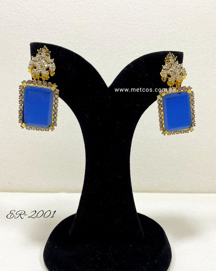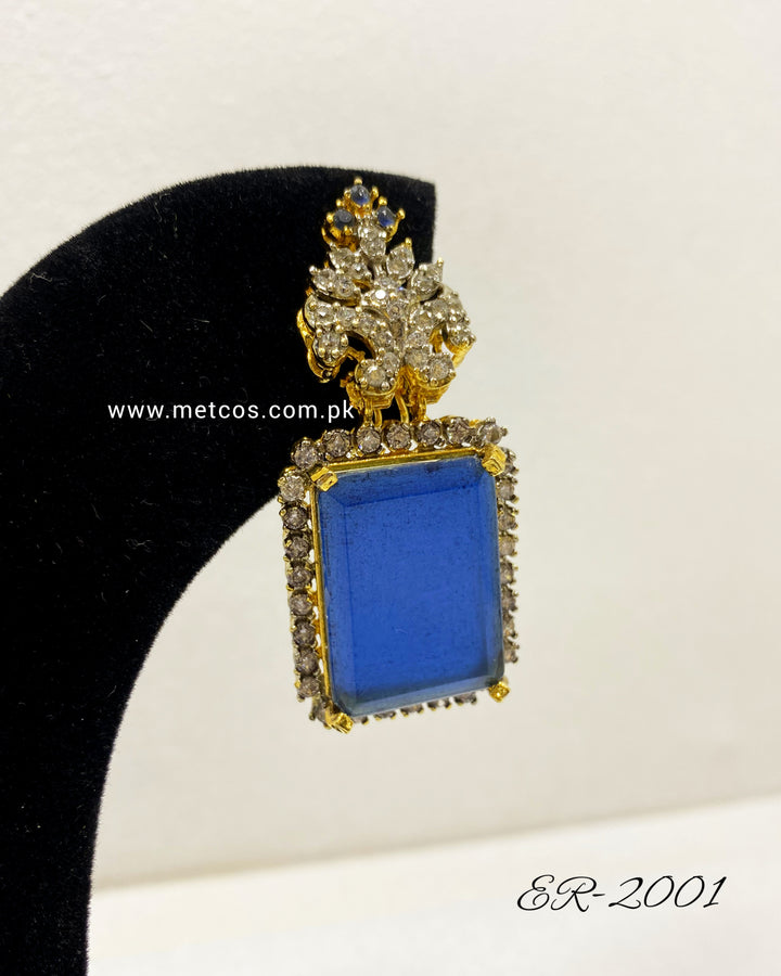 24k Gold Plated Sapphire Blue Zirconia Earrings.